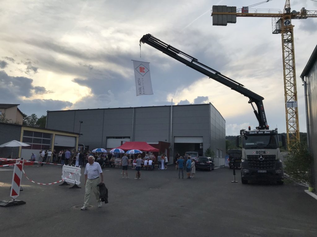Bei strahlendem Sonnenschein fand am 20. Juli 2019 unser Betriebsfest auf unserem Bauhofgelände statt. Am Nachmittag konnten alle Kinder ihr Geschick bei unserem Baustellenparcours, am Nagelbalken, beim Werfen, Kegeln oder am Kinderbagger beweisen. Die Hüpfburg, das Sandmalen und der große Sandkasten waren auch immer wieder belagert. Am Abend haben wir unsere langjährigen und treuen Mitarbeiter für Ihre 25-jährige bzw. 40-jährige ununterbrochene Tätigkeit bei der Fa. Roth mit der Ehrenurkunde der Handwerkskammer in Silber bzw. Gold ausgezeichnet. Für Fortbildungsmaßnahmen zum Vorarbeiter konnten wir zwei junge Nachwuchskräfte am Bau ehren. Außerdem wurden noch unsere neuen Mitarbeiter offiziell begrüßt und unsere neuen Auszubildenden, die am 1. September 2019 bei uns ihre Lehre beginnen, vorgestellt.