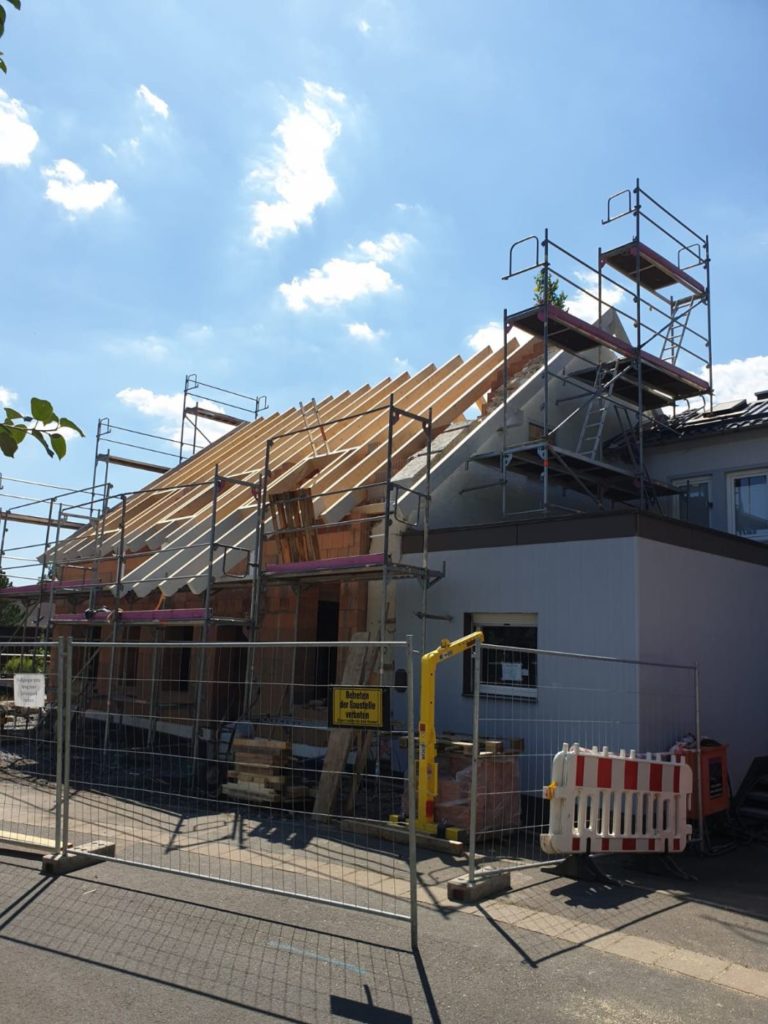 Am Mittwoch, den 24.07.2019, fand bei strahlendem Sonnenschein und heißen Temperaturen das Hebfest für den Neubau eines Einfamilienwohnhauses in Leupoldsdorf statt. Unsere Maurer und Zimmerer hießen alle Richtfestgäste herzlich willkommen. Sein erstes Glas erhob unserer Zimmermann auf das Wohl der Bauherrschaft und bedankte sich bei ihm und bei allen am Bau Beteiligten. Wir wünschen unseren Bauherrn alles Gute und gratulieren zum neuen Heim!