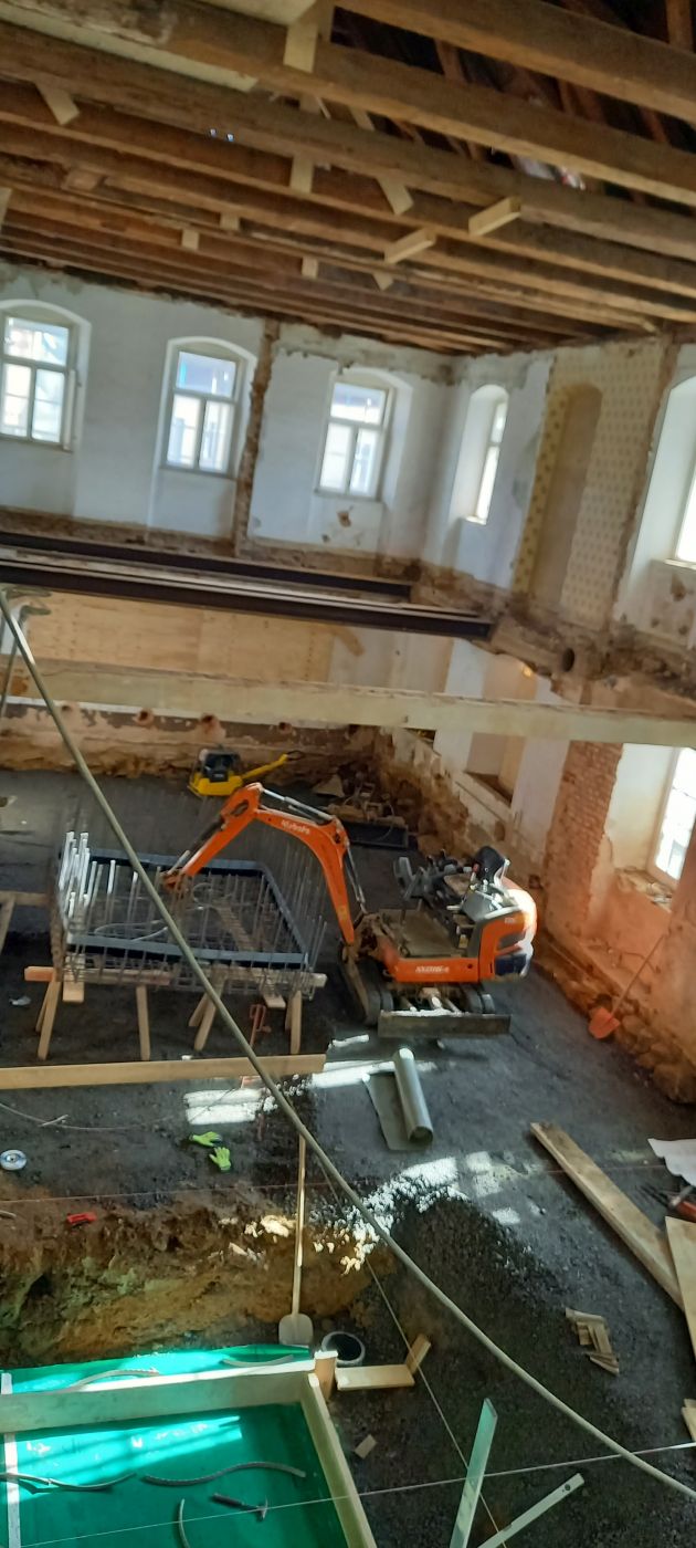 Aktuell erstellen wir den neuen Aufzugsschacht, der die barrierefreie Erschließung der einzelnen Stockwerke ermöglicht.